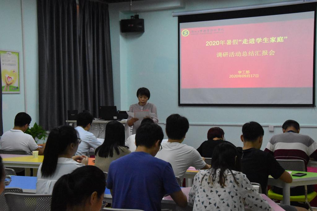 9月17日下午,2020年暑期“走进学生家庭”调研活动汇报会在格物楼一层大学生思想政治教育温馨港团辅室召开。各二级学院学工办主任、参与2020年暑期“走进学生家庭”调研活动的全体老师、学生处科级以上干部等30余人参加了会议。会议由学生处副处长耿丽主持。