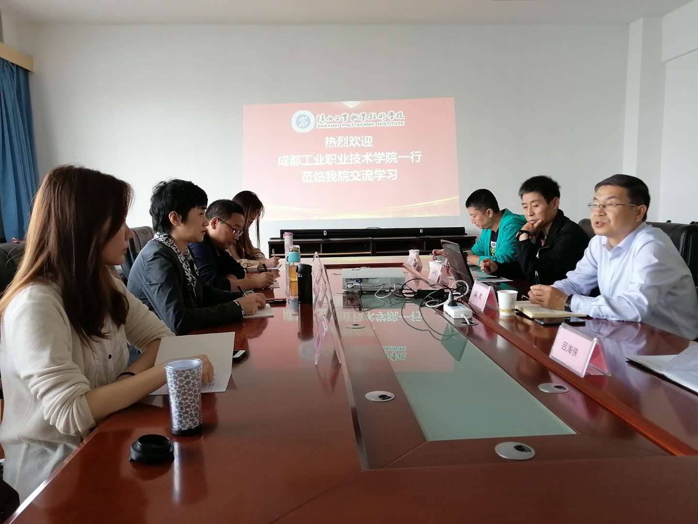9月24日,成都工业职业技术学院通识教育教学部党总支书记、主任潘岚一行4人,就公共基础课、体育课建设与改革等到公共课教学部、体育部进行对口交流学习。公共课教学部部长南欢、体育部部长张绪绪等在崇文楼711会议室热情接待了潘岚主任一行。