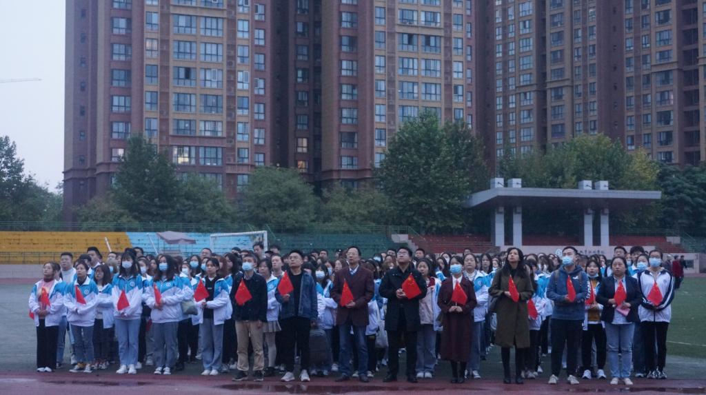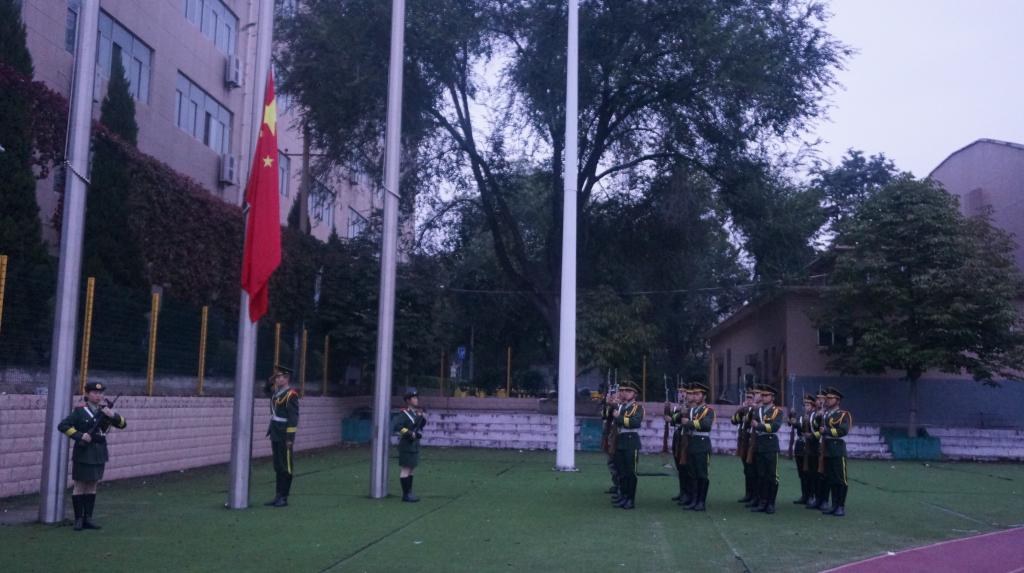 7时整,升旗仪式正式开始。国旗护卫队迈着铿锵的步伐护送五星红旗走向升旗台,全体师生高唱国歌,行注目礼,五星红旗冉冉升起。2019级学生代表张峰作国旗下发言,他结合暑期三下乡的实践感受,表明了走出校园,走进社会以及深入贫困山区了解国情民情的必要性。并号召广大同学要将在校所学、所思、所悟转化为过硬本领,投身强国伟业,努力在新时代建功立业,为祖国发展奉献自己的力量!