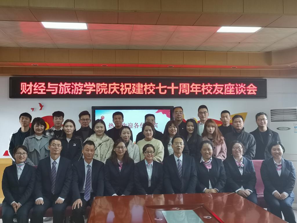 2020年11月15日,陕西工院迎来了建校70周年的生日,在这特别的日子里,财经与旅游学院特别邀请了27名校友和两家企业代表参加了我校举办的建校70周年庆祝大会。会后,财经与旅游学院在格物楼408举办了校友座谈会,会议由党总支书记孙继龙主持,院长吴姗娜、副院长赵丽娟,学工办主任、教研室主任、原任班主任一同参加。