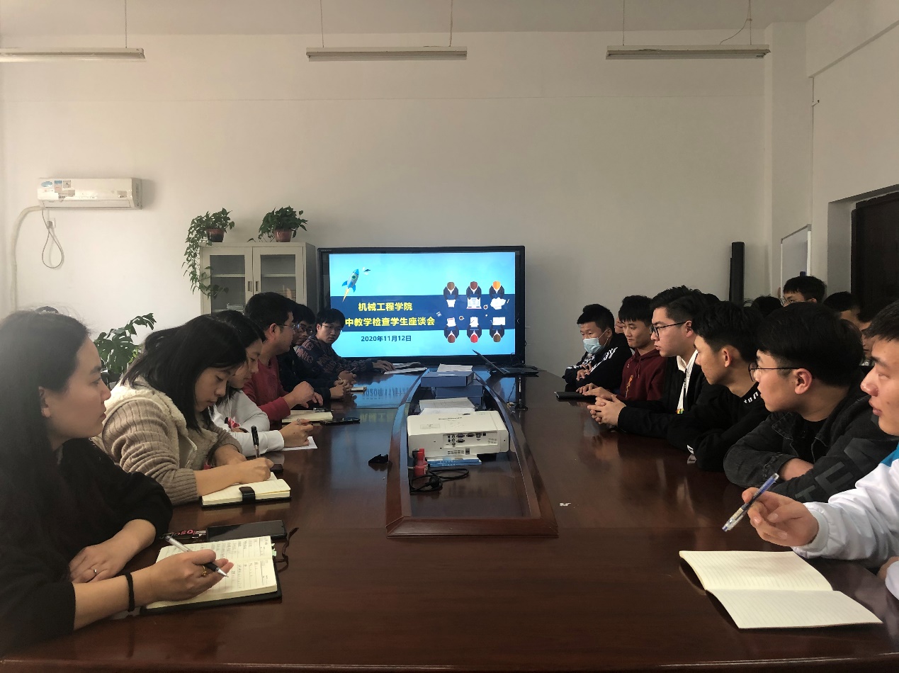 为落实学院期中教学检查工作要求,机械工程学院于11月12日下午在行知楼E-412会议室举行学生座谈会,机械工程学院副院长张文亭、学工办主任何瑾、教师代表及各班学生代表参加了会议。