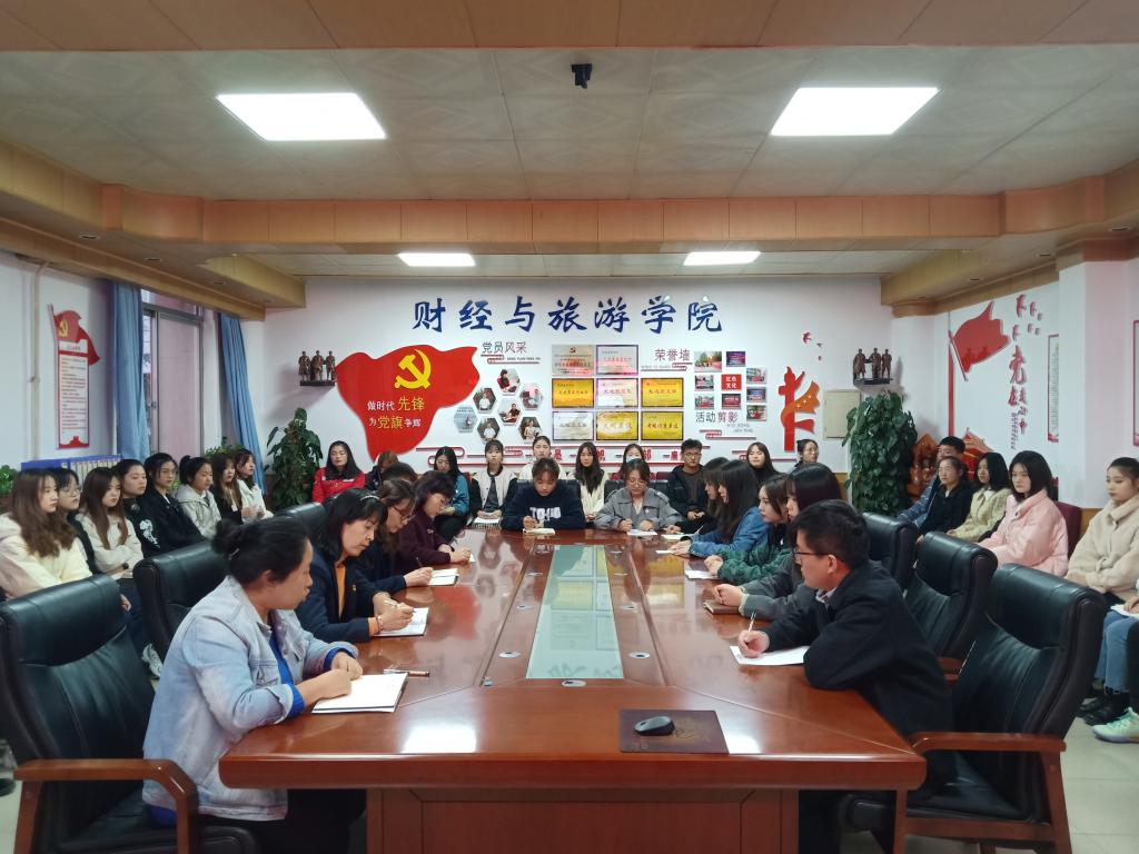 为加强学风建设,及时掌握学生对教学与学生管理工作的意见和建议。11月20日下午,财经与旅游学院2020-2021学年第一学期期中教学检查学生座谈会在格物楼举行。财经与旅游学院副院长赵利娟、教学办主任仝丹娜、实训中心主任张艳、学工办主任杜娟、辅导员赵盼盼及2019级、2020级学生代表共40余人参加了此次座谈会。