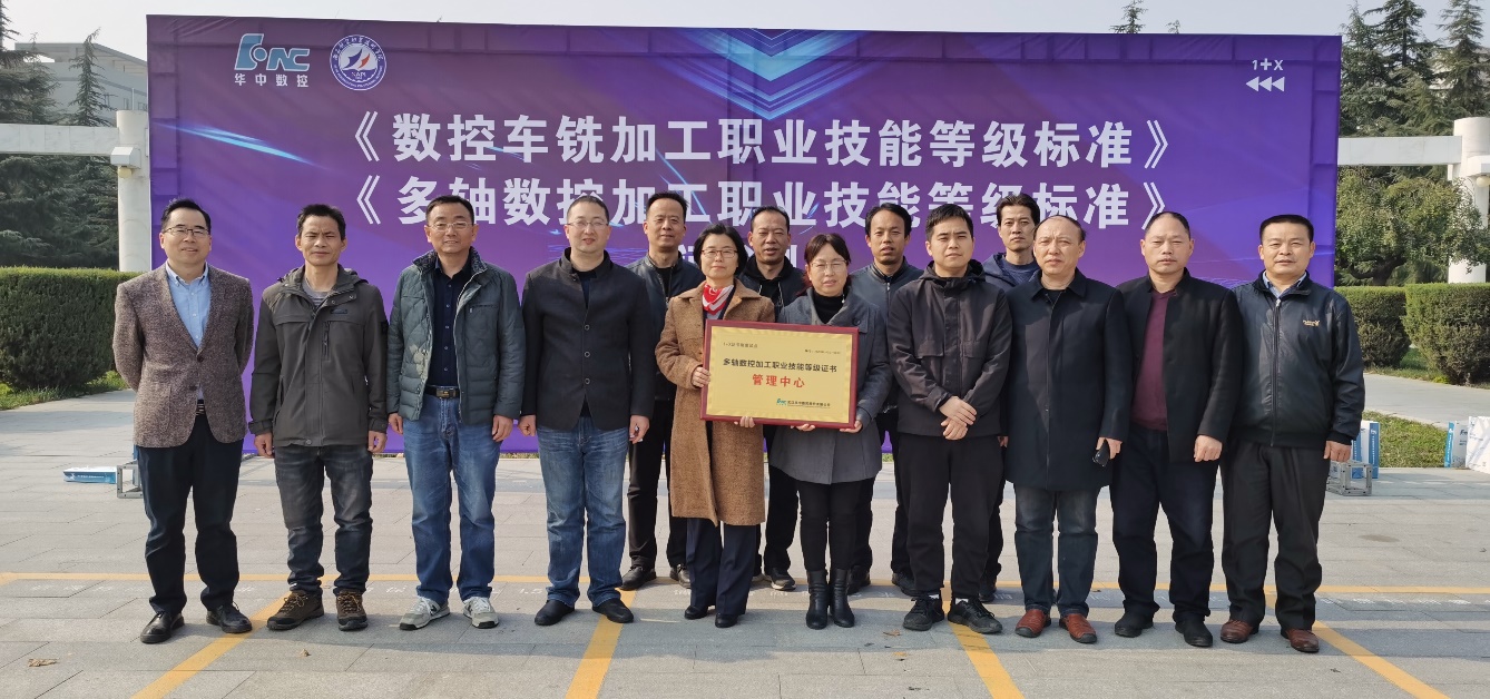 11月14日上午,机械工程学院副院长郭新玲及数控加工技术骨干教师赴西安航空职业技术学院参加西北地区数控“1+X”证书试点工作说明会。陕西省教育科学研究院职业教育与继续教育研究中心“1+X”办公室主任惠均芳,华中数控教育事业部总经理周理,西航职院副校长张敏华,多轴数控加工“1+X”标准开发专家、湖南工业职业技术学院机械学院院长李强与来自陕西、甘肃、青海、宁夏、新疆五个地区职业院校负责数控“1+X”证书试点工作的专家和教师140余人参加会议。武汉华中数控股份有限公司授牌机械工程学院“多轴数控加工考核管理中心”资质。