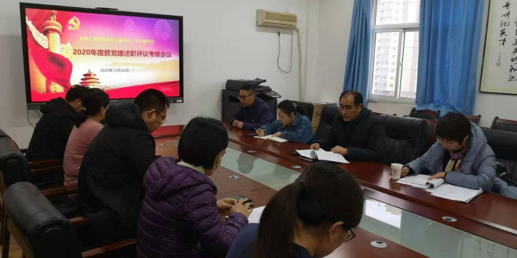 12月25日下午,材料工程学院党总支在行知楼E512召开2020年抓党建述职评议考核大会。材料学院党总支委员、教师及学生支部委员、各党小组组长及学院督导组王艳同志参加了会议。会议由材料学院党总支书记韩小峰主持。
