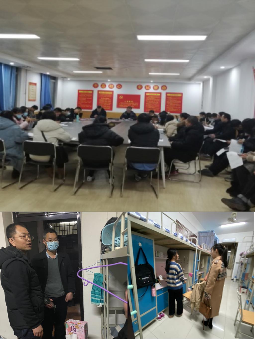 会后,党总支书记张科海带领辅导员、班主任深入学生宿舍,了解学生返校情况和心理状态,关切询问学生返校后的学习生活状况及需求,并对宿舍卫生、安全进行了检查、督导及个人防护提醒。