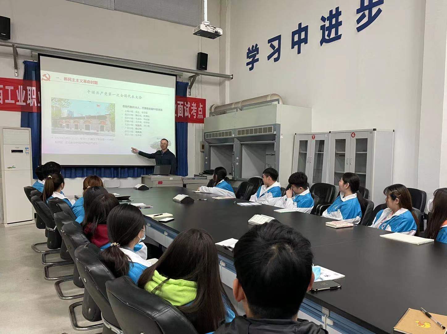 为深入落实“三会一课”制度,贯彻落实学校党委要求,结合化纺服学院“四史”学习教育工作安排,加强学习型党支部建设,3月10日,化纺服学院学生工作第二党支部书记王飞龙为支部全体党员、第十二期党员发展对象及入党积极分子上了一堂题为“重温党的百年光辉历程、深刻感悟党的初心使命”的党课。
