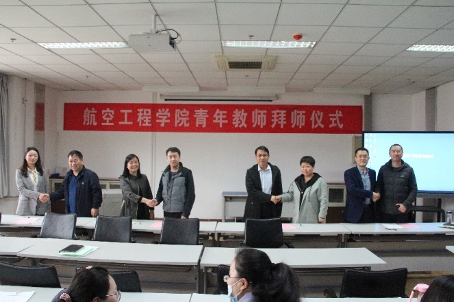 为了加快青年教师的成长步伐,引导青年教师走专业化成长路线,3月29日下午在精艺楼3015,航空工程学院举行了青年教师拜师仪式,参加此次活动的有人事处处长殷锋社、教务处副处长舒蕾以及航空学院全体教师,活动由航空学院副院长段文洁主持。