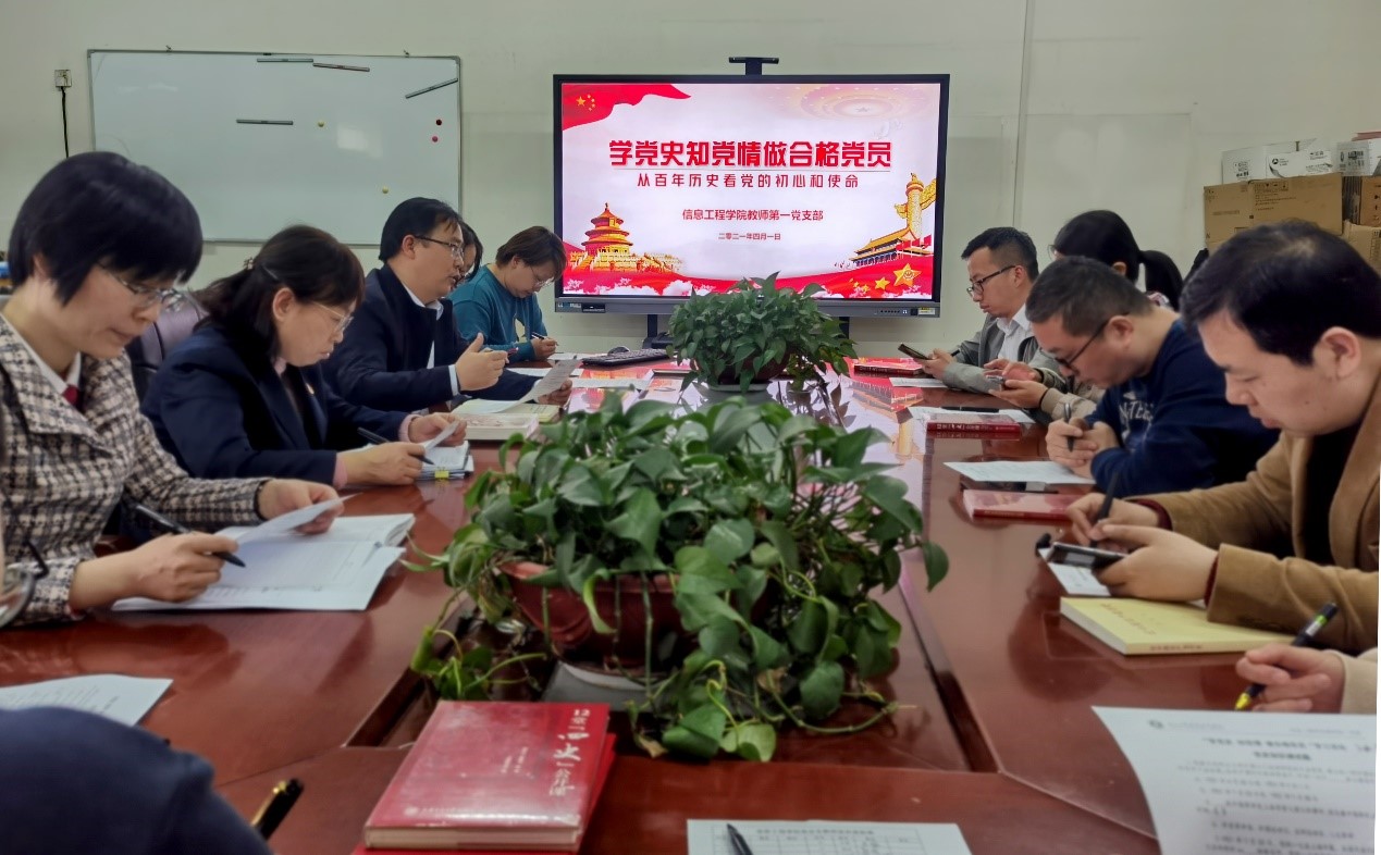 为深入学习贯彻中省关于开展党史学习教育的文件精神,结合信息学院党史学习教育工作安排要求,4月1日,信息学院党总支教师第一党支部在崇文楼A806开展了“学党史、知党情、做合格党员——从百年历史看党的初心和使命”特色主题党日活动,活动由支部书记宋承继主持,教师第一党支部全体党员参加。