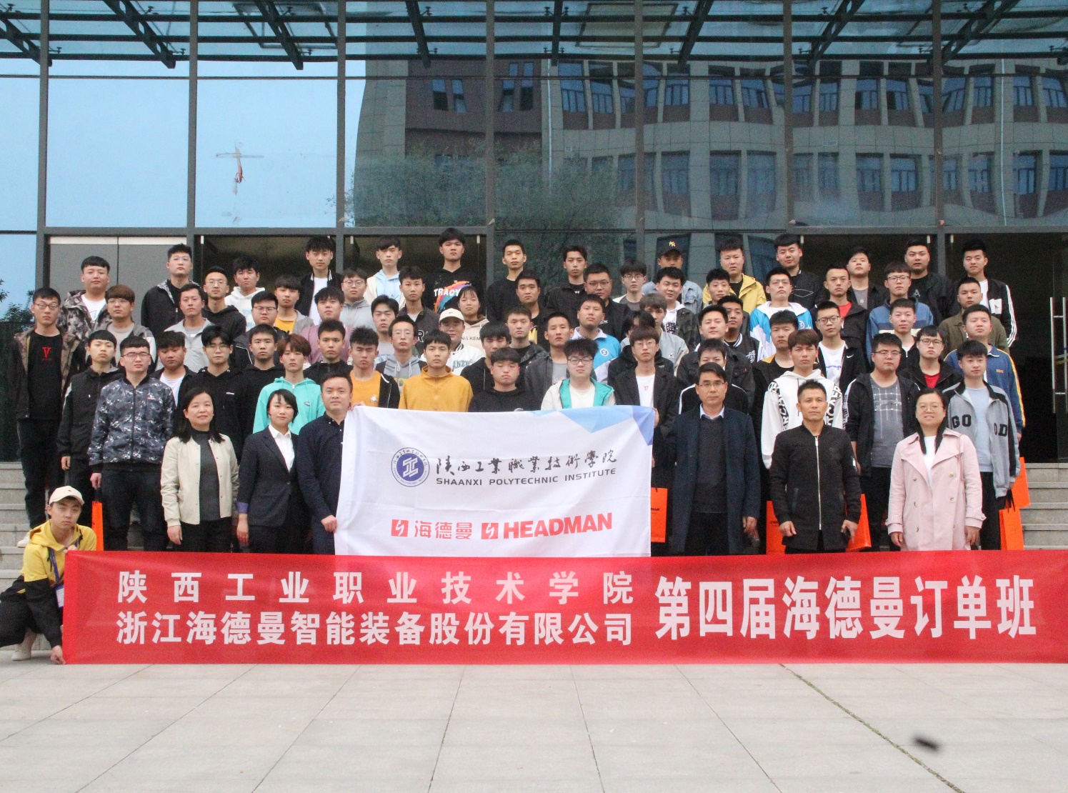 4月7日下午,我院与浙江海德曼智能装备股份有限公司合作组建的第四届“海德曼”订单班在崇明楼102教室成功开班。浙江海德曼智能装备股份有限公司人力资源科科长郭献育、人事招聘经理章丽君、航空工程学院党总支书记刘军旭、副院长段文洁、学工办主任张旭、订单班班主任王颖及第四届“海德曼”订单班全体学员参加了开班仪式。开班仪式由副院长段文洁主持。本届订单班的学员由我院数控技术专业、工业机器人专业、机电一体化技术专业、数控设备应用与维护专业同学组成,共计67人。