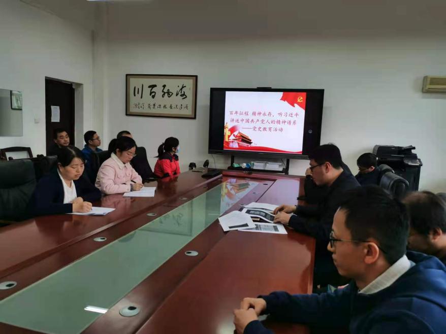 4月14日下午,材料工程学院教师党支部全体教师党员在材料学院会议室参加“听习近平讲述中国共产党人的精神谱系”党史学习教育,郝平书记主持会议。