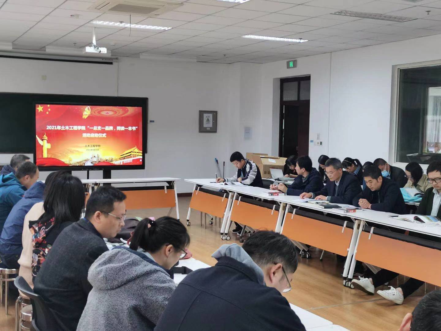 按照《关于做好2021年度“一总支一品牌,同读一本书”活动的通知》精神,土木工程学院党总支于4月14日在精艺楼401举行了“一总支一品牌 同读一本书”活动启动仪式,会议由党总支书记张科海主持,土木全体教师党员参加此次会议。