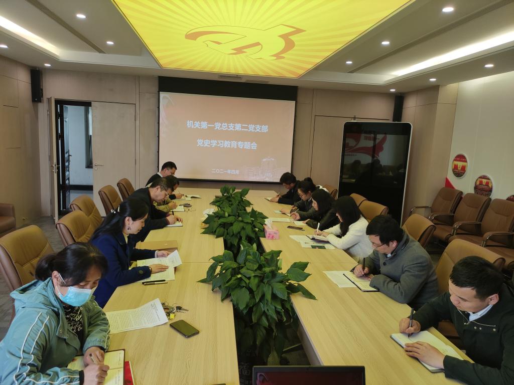 4月14日下午,机关第一党总支第二党支部在崇文楼党员活动室开展党史学习教育专题学习会,全体党员参加了学习。