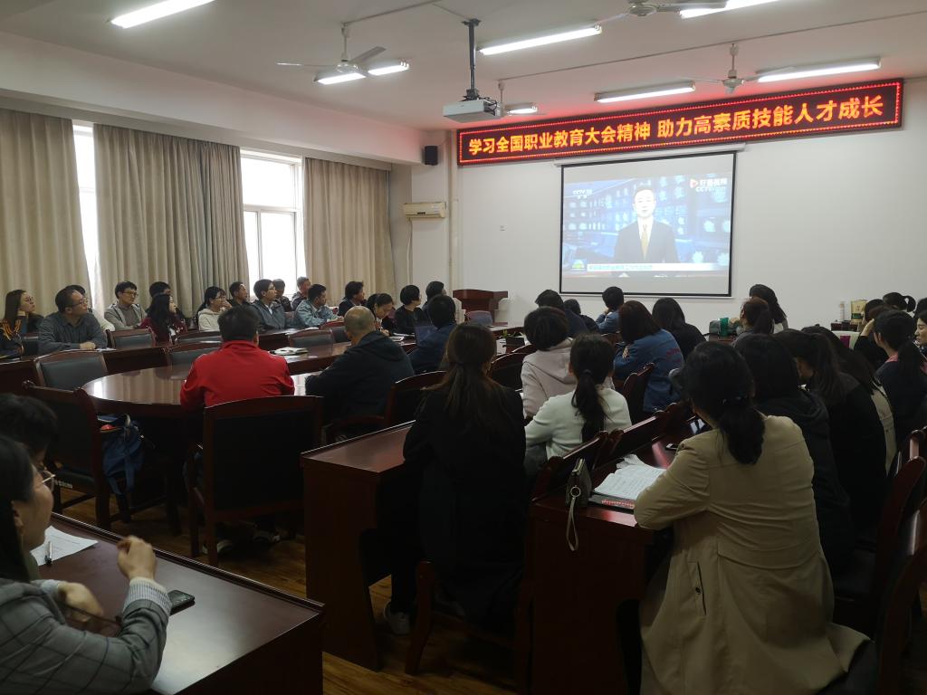 会上,全体教师集体观看了全国职业教育大会实况,学习了习近平总书记对职业教育工作的重要指示和李克强总理批示精神。王艳同志领学了新华网题为《全国职业教育大会释放了哪些信号?》的文章。会议指出,习近平总书记对职业教育工作作出的重要指示高屋建瓴、意义深远,为新时代职业教育改革发展指明了方向,提供了根本遵循。全体教职员工要深入学习贯彻习近平总书记指示精神,牢记为党育人、为国育才的使命,落实立德树人根本任务,为职业教育大发展贡献力量。
