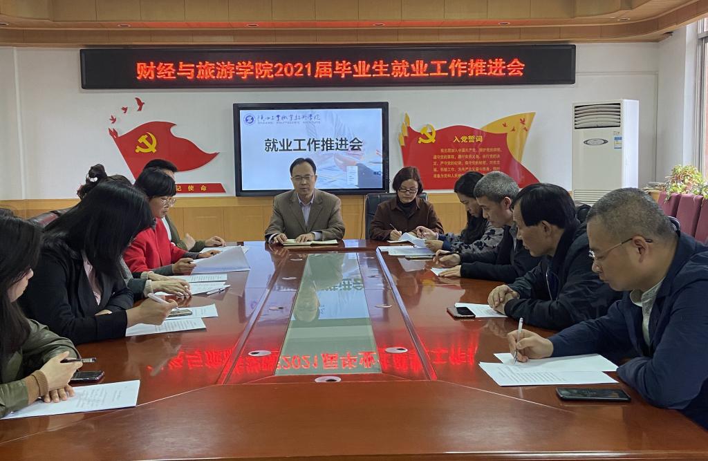 4月22日下午,财经与旅游学院在格物楼408会议室召开了2021届毕业生就业工作推进会,财经学院党总支书记孙继龙、院长吴姗娜、学工办主任杜娟、毕业班辅导员及2021届毕业班班主任参加了会议。