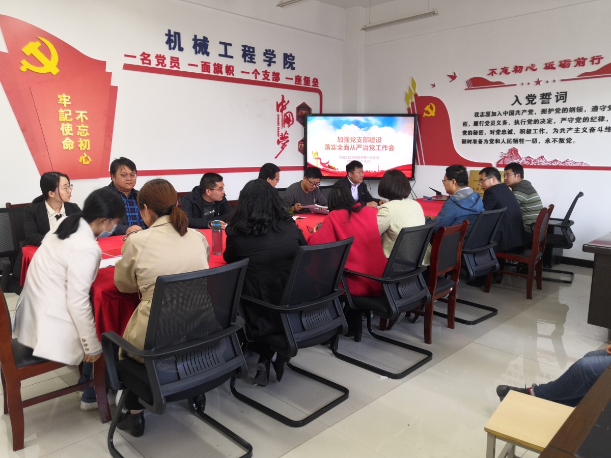 4月28日下午,机械工程学院教师第一支部在行知楼E410召开“加强党支部建设,落实全面从严治党”工作会。机械学院党总支书记苏宏志参加了会议,会议由支部书记张文亭主持。