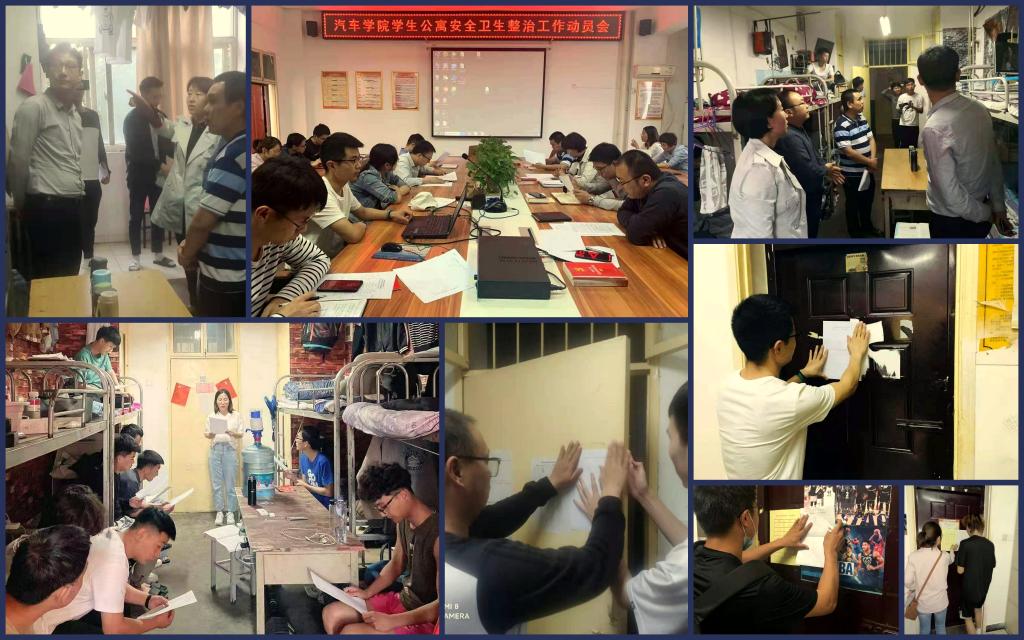 会后,全体参会人员分为3个检查组,分区域进学生公寓开展卫生安全检查,各班班主任进宿舍宣读并张贴《学生宿舍安全、卫生整治工作评分标准》。