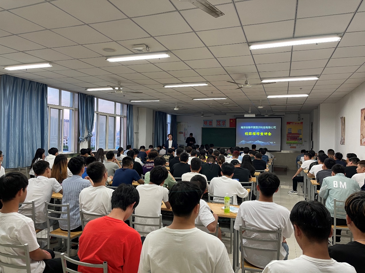 会上,关经理详细介绍了南京创维平面显示科技有限公司相关情况,从企业资产概况、发展状况、公司产品等方面都做了讲解,随后他着重讲解了招聘岗位、薪资待遇及员工福利,同时还对企业文化及厂区硬件建设等进行了介绍。本次向电气学院提供就业岗位30个,同学们积极向关经理提问发展空间、职业路径等问题,关经理进行详细解答。