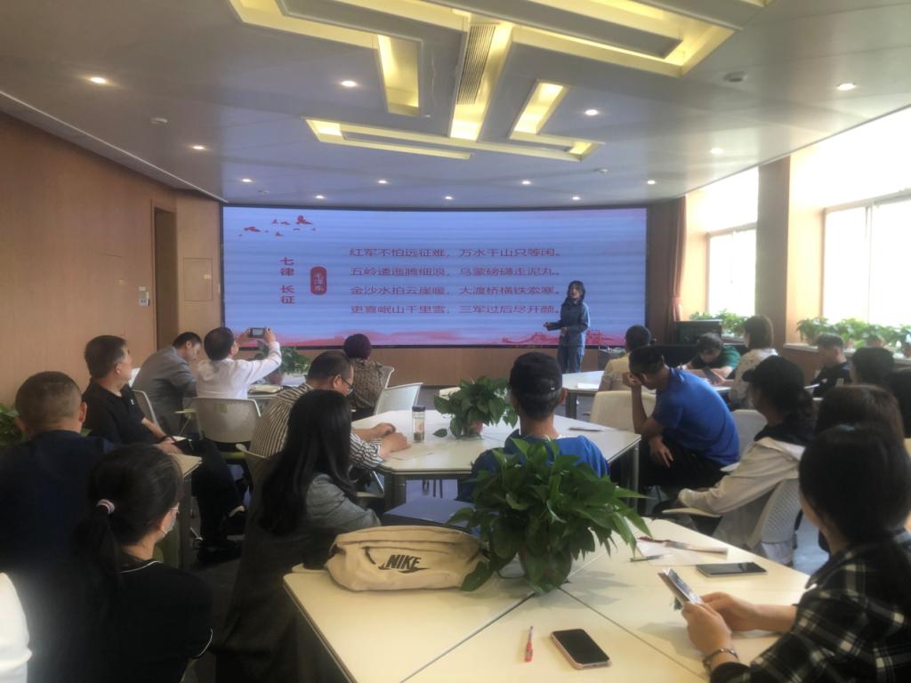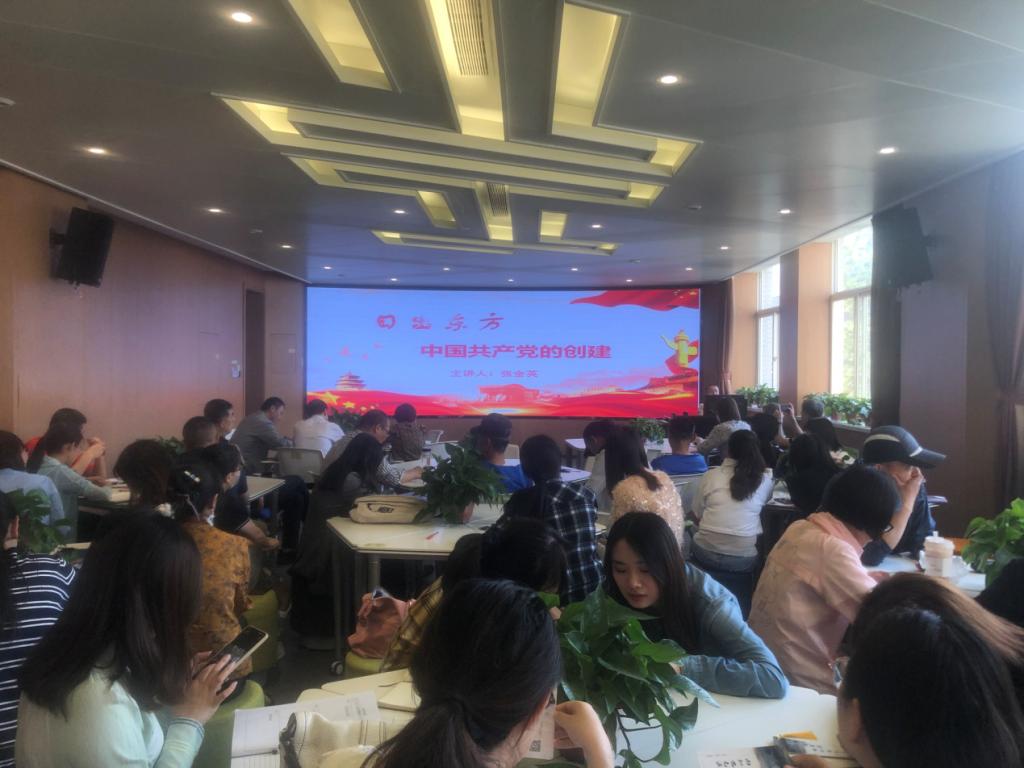 5月18日下午,马克思主义学院师生同台送教“党史”教育系列专题讲座首场活动在崇文楼三层VR智慧思政实训基地举行,公共教学党总支所辖数语教学、英语教学、马院、体育部、继教美育国际等5个支部全体党员参加,活动由公共教学党总支书记南欢同志主持。