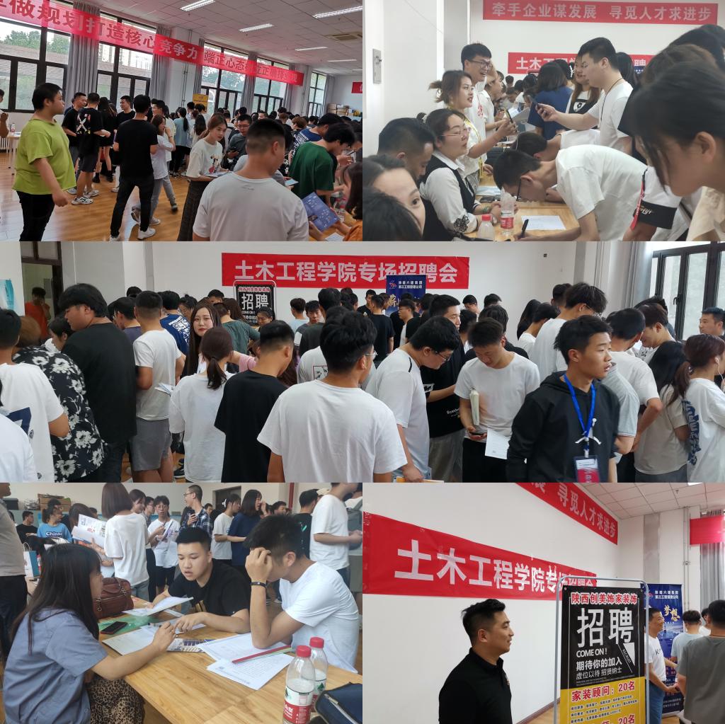在前期工作的基础上,土木工程学院持续深挖岗位资源,进一步拓宽就业渠道,为学生搭建就业平台。利用互联网开展形式多样、资源丰富的供需对接,通过就业政策宣传,让毕业生充分了解各项就业政策,加强毕业生对就业形势的掌握,为毕业生拓宽求职渠道做好准备。积极收集梳理汇总就业招聘信息,利用毕业生QQ群、微信群、微信公众号平台,为毕业生提供全面丰富的招聘信息,帮助毕业生精准就业。5月27日,学院在精艺楼1003教室举办专场招聘会,中天西北建设投资集团有限公司、陕西中机岩土工程有限责任公司、陕西六建集团第三工程公司、四川雅典建设工程有限公司、浙江振升建设有限公司、南京增收建筑工程有限公司等多家用人单位为学生提供多个工作岗位,吸引了大批毕业生前来应聘洽谈。与此同时,学院还持续做好就业指导服务,辅导员和班主任协同努力,通过班会和一对一沟通等多种方式,了解学生就业意向和就业进展情况,帮助学生分析就业形势、调整就业心态、找准就业方向,并就简历制作、面试技巧、就业维权、三方协议申请流程及注意事项等进行辅导,帮助学生尽快适应求职节奏。