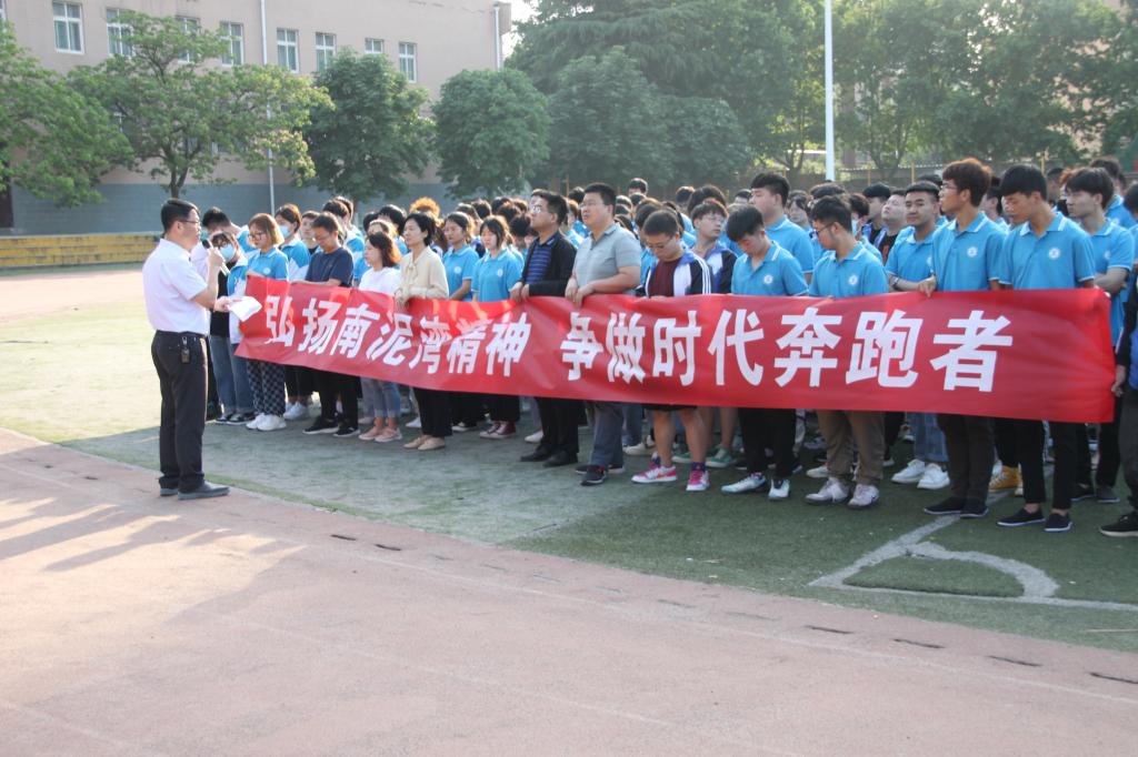 学生代表质检2001班张婷做了《以南泥湾精神砥砺优良品格》为题的国旗下发言,她从大学生的角度以党史为线索,讲述了南泥湾精神形成的过程,并号召广大同学要传承自力更生、艰苦奋斗的的优良传统,磨练出坚韧不拔的意志,铸造顽强性格和奋发向上的精神。随后,质检1902班张家兴在国旗下演唱歌曲《南泥湾》,热情歌颂了开荒生产的八路军战士将南泥湾改造成美丽的“江南”的生动实践。