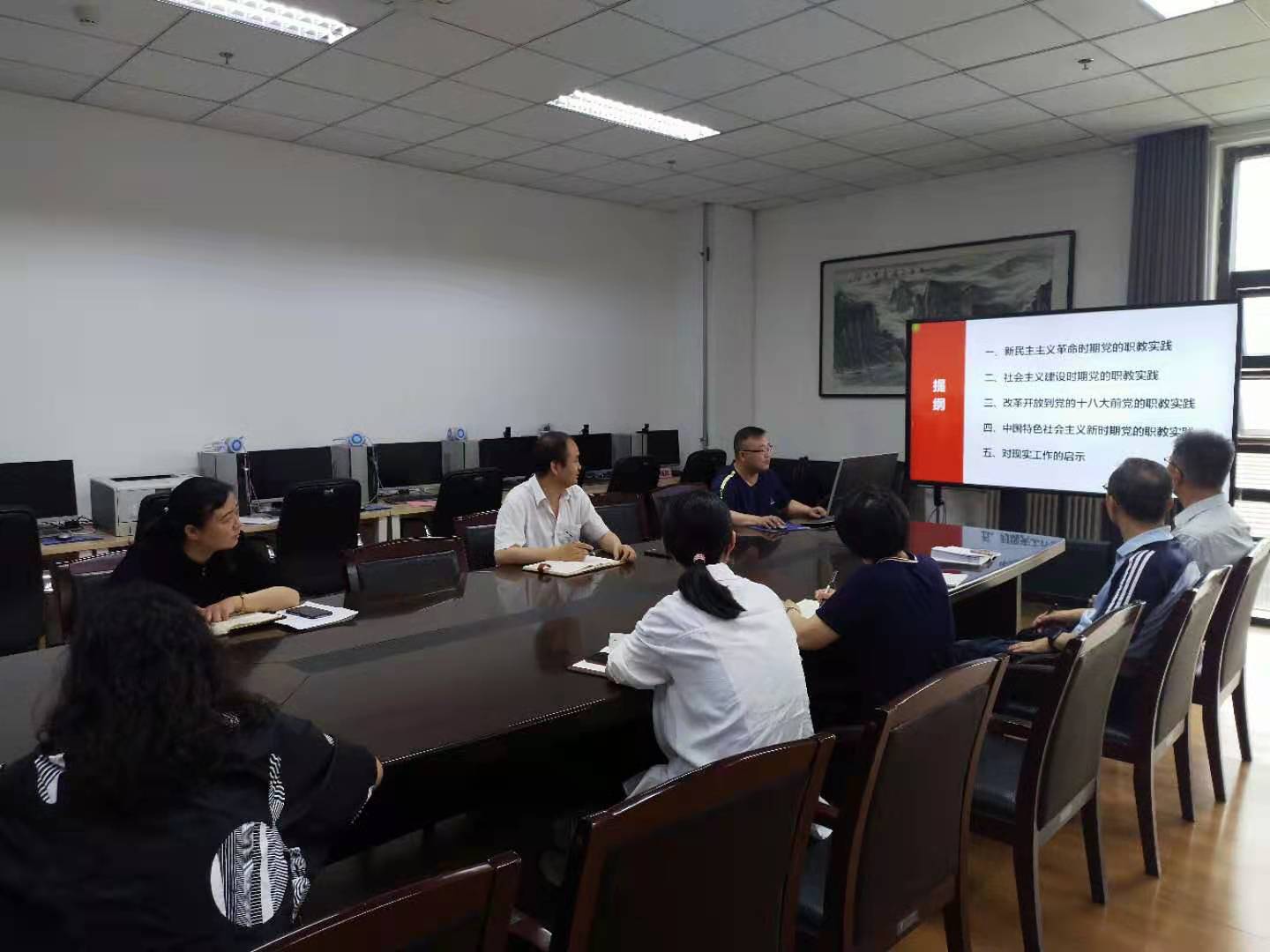 刘其兵以《中国共产党的百年职教探索与实践》为题,从新民主主义革命时期党的职教实践、社会主义建设时期党的职教实践、改革开放到党的十八大前党的职教实践、中国特色社会主义新时期党的职教实践几个方面回顾了党发展职业教育的百年历程,为党员们上了一堂生动的党史专题党课。