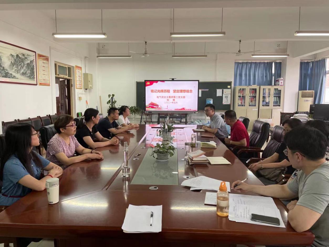 6月9日,为深入开展党史学习教育,深刻领悟党的百年历程,激励广大党员铭记党的光辉历程,坚定理想信念,电气党总支教师第二支部书记开展以“铭记光辉历程,坚定理想信念”为主题的党史学习教育暨书记讲党课活动。