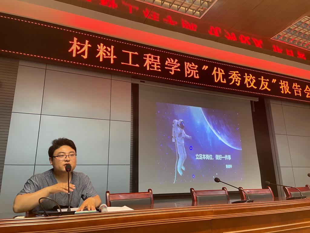 为提升学生专业认知,了解职业发展前景,树立正确的劳动观,6月14日,材料工程学院在笃学B楼举办“优秀校友”报告会。我校2011届焊接专业毕业生靳虎平为同学们作报告,材料工程学院党总支书记郝平,学工办主任赵盼盼以及焊接技术及自动化专业和理化测试与质检技术专业学生参加。