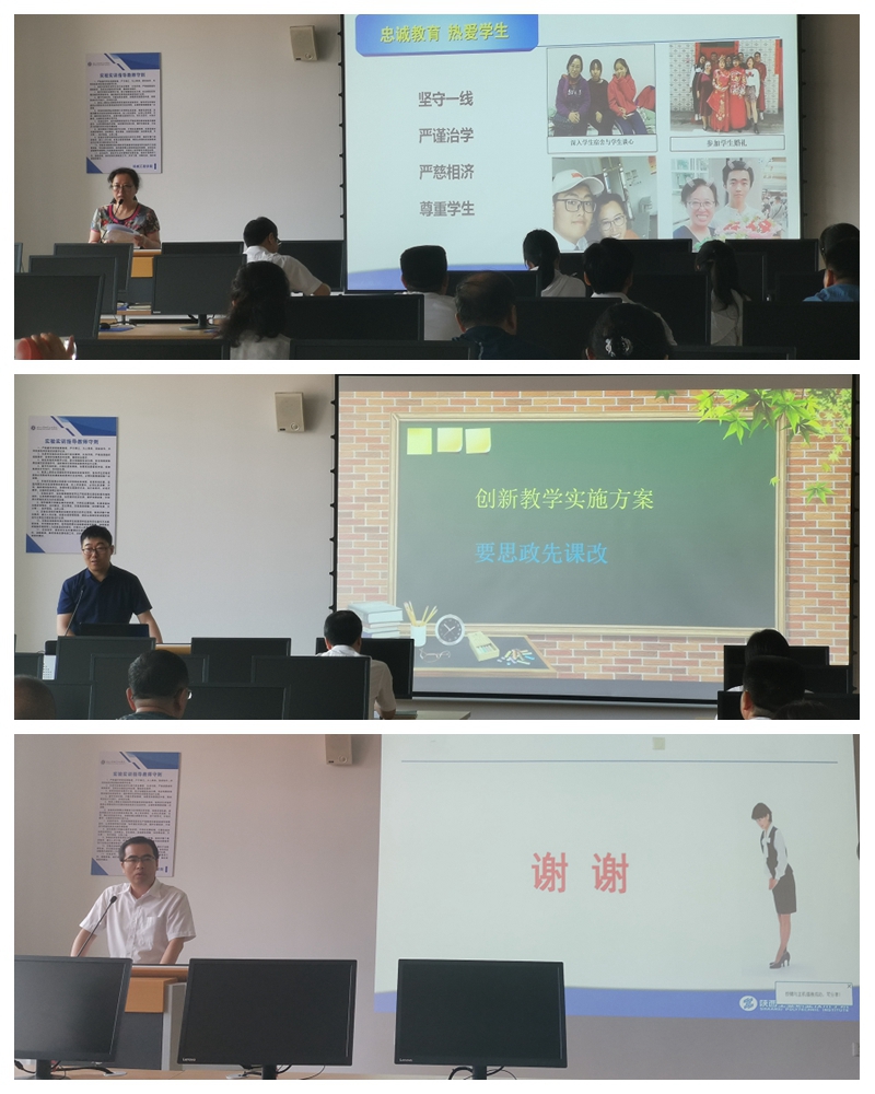 梁晓哲老师以《思政与技术完美结合,德育与智育相融并进》为题,结合他从事实训教学、学生工作、专业教学的经历,着重介绍了在专业课程教学中如何融入课程思政元素,增强课堂的时代性、感染性和实效性,调动学生的积极性,使学生产生兴趣,将课堂从老师的独角戏变成师生的交响乐。张翠花老师以《默默无闻育桃李,教书育人谱华章》为题,从坚守一线、严谨治学、严慈相济、尊重学生等方面讲述了自己如何开展教学研究、关爱学生及在教学建设方面取得的成绩。