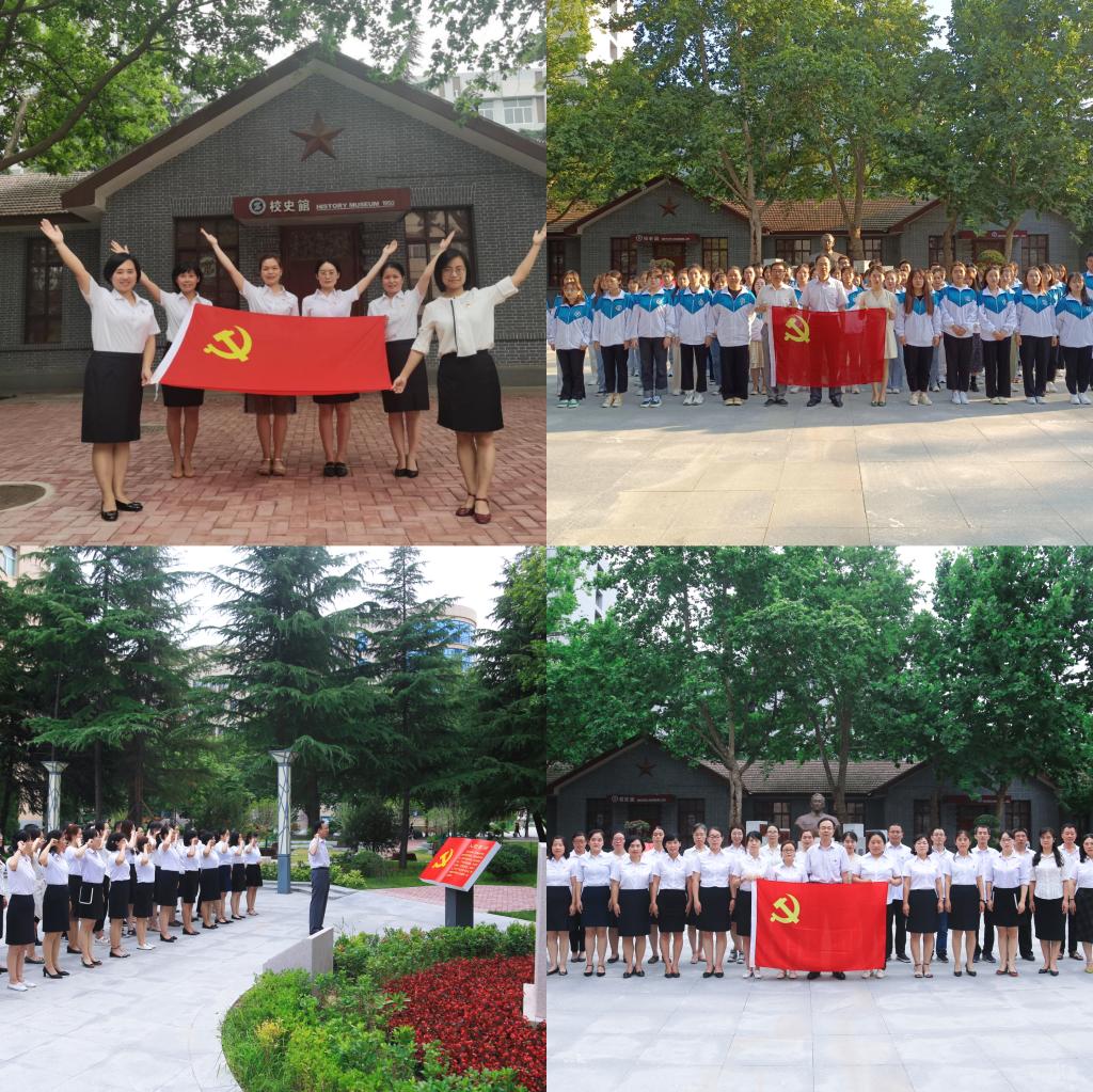 “没有共产党,就没有新中国,共产党辛劳为民族,共产党他一心救中国”,为表达对党和国家的热爱,教师第一、第二党支部临时组建5组党员组合为党献出了表白语。其中教师第一党支部六位青年教师党员组成的200岁的党员组合慷慨激昂地对党表初心“星火起红船,豪气冲霄汉。革命艰辛多壮志,一看星光灿。脱贫强国基,致富偿民愿。再振工院续辉煌,举世当惊叹!”。教师第二党支部五位教师党员组合对着党旗重温入党誓词,不忘初心,并意气风发地以青春的姿态对党表决心“吾愿进前而勿顾后,背黑暗而向光明,以青春之我,创建青春之家庭,青春之工院,青春之国家,青春之民族,青春之人类,青春之地球,青春之宇宙,资以乐其无涯之生”。同时,党总支分别组织学生党员、教师党员举行入党宣誓仪式及重温入党誓词活动,坚定理想信念,牢记初心使命。