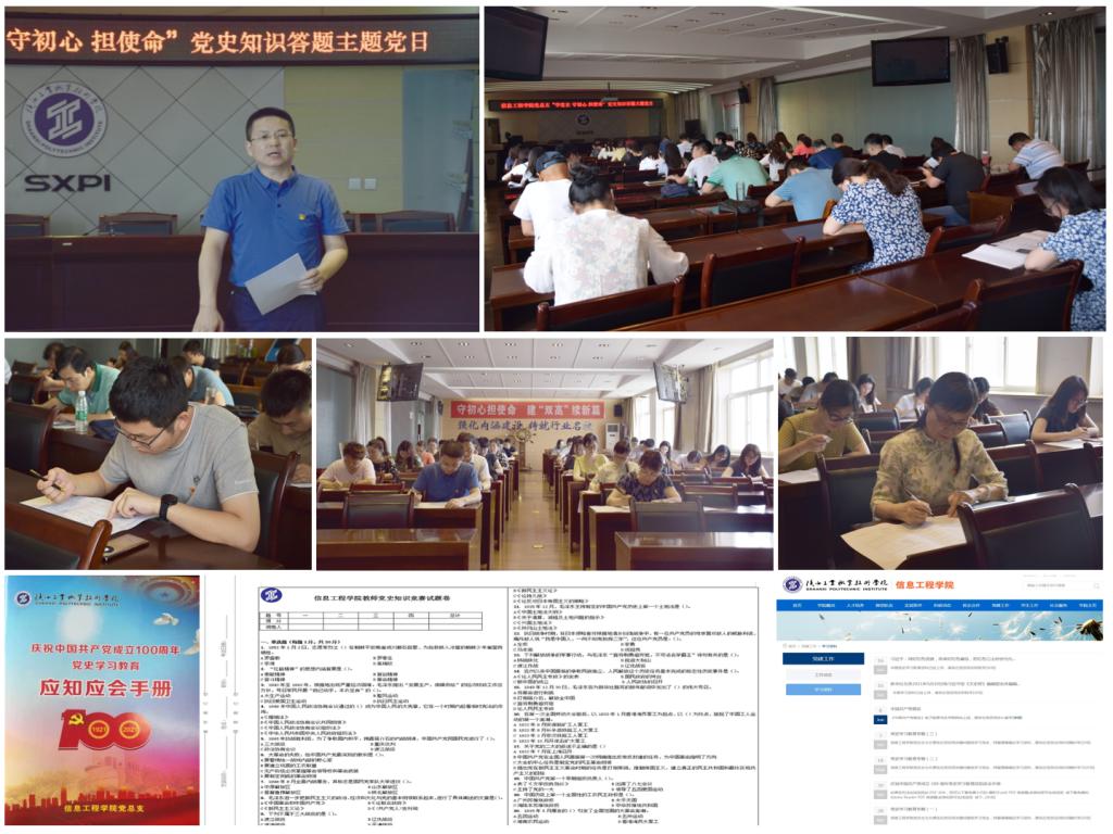 本次党日活动分为党史学习教育宣讲和党史知识答题两个环节。信息工程学院党总支书记闫军对学院党史学习教育开展情况进行回顾总结,强调党史学习教育始终要以“学”为导向、“做”为重点、“事”为抓手、“实”为目标,服务中心工作;党总支副书记郭新玲对本次党日活动进行具体安排,她指出:为扎实开展党史学习教育,我院在3月初精心编制了《党史学习教育应知应会手册》,确保党员人手一册,保证随时随地便于学习;在学院网站、微信公众号SXPI信言信语开设党建专栏,制作“可视化教材、党史学习教育专题”等学习资料,确保在坚持读原著,学原文,悟原理的基础上,精读和泛读结合,线上和线下补充,将党史学习内化于心,外化于行,形成积极好学的氛围,此次主题党日就是检验学习成效的有效手段和有力抓手。