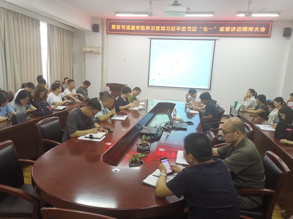 7月5日下午,商贸与流通学院召开教职工大会,专题学习贯彻习近平总书记在庆祝中国共产党成立100周年大会上的重要讲话精神。