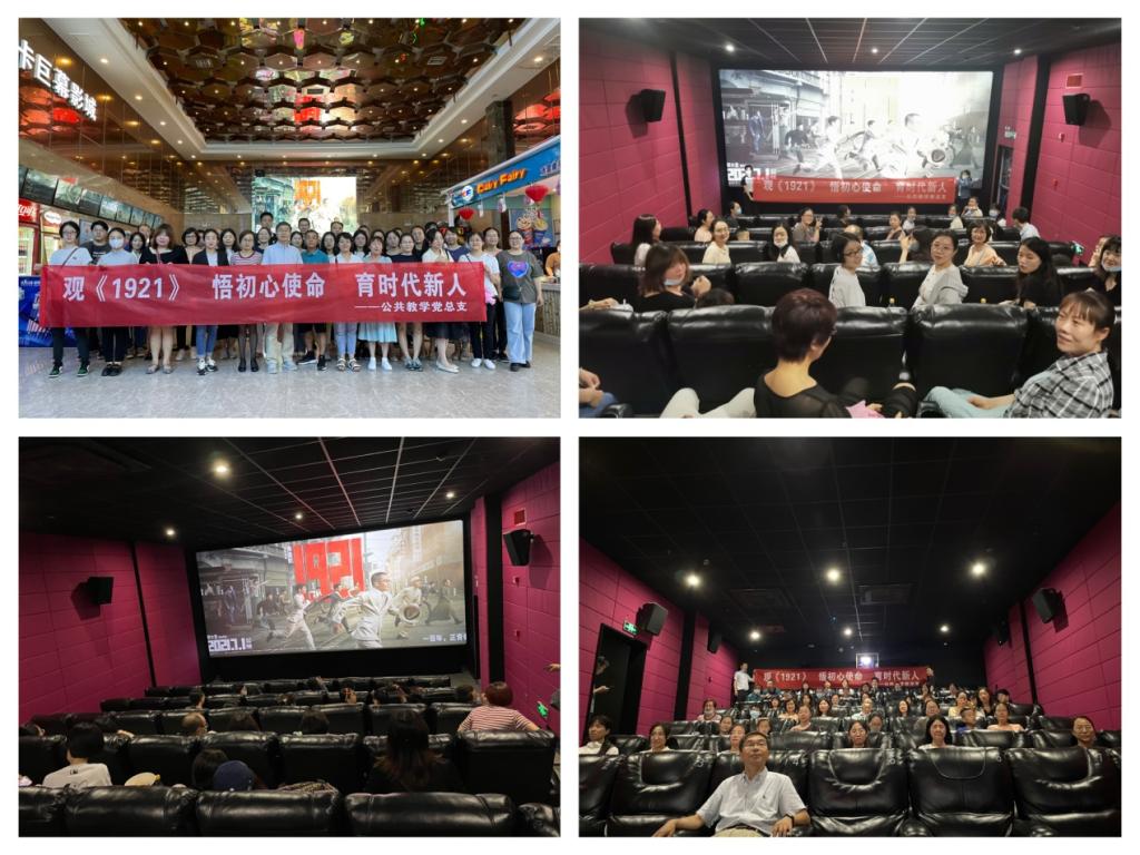 为深入学习习近平总书记在“庆祝中国共产党成立100周年大会”上的重要讲话精神,进一步推动党史学习教育,坚定广大教职工立德树人、铸魂育人的理想信念,7月2日下午,公共教学党总支组织60余名党员赴咸阳奥斯卡影城,集体观看献礼建党100周年优秀影片《1921》,开展“观《1921》悟初心使命 育时代新人”学党史主题党日活动。