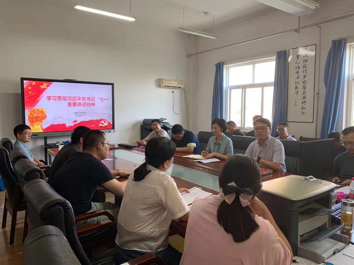 为把习近平总书记“七一”重要讲话精神学深悟透、落到实处,推动党史学习教育不断走深走实,7月8日下午,材料学院开展学习贯彻习近平总书记“七一”重要讲话精神专题活动,会议由材料工程学院书记郝平主持,材料学院全体党员参加。