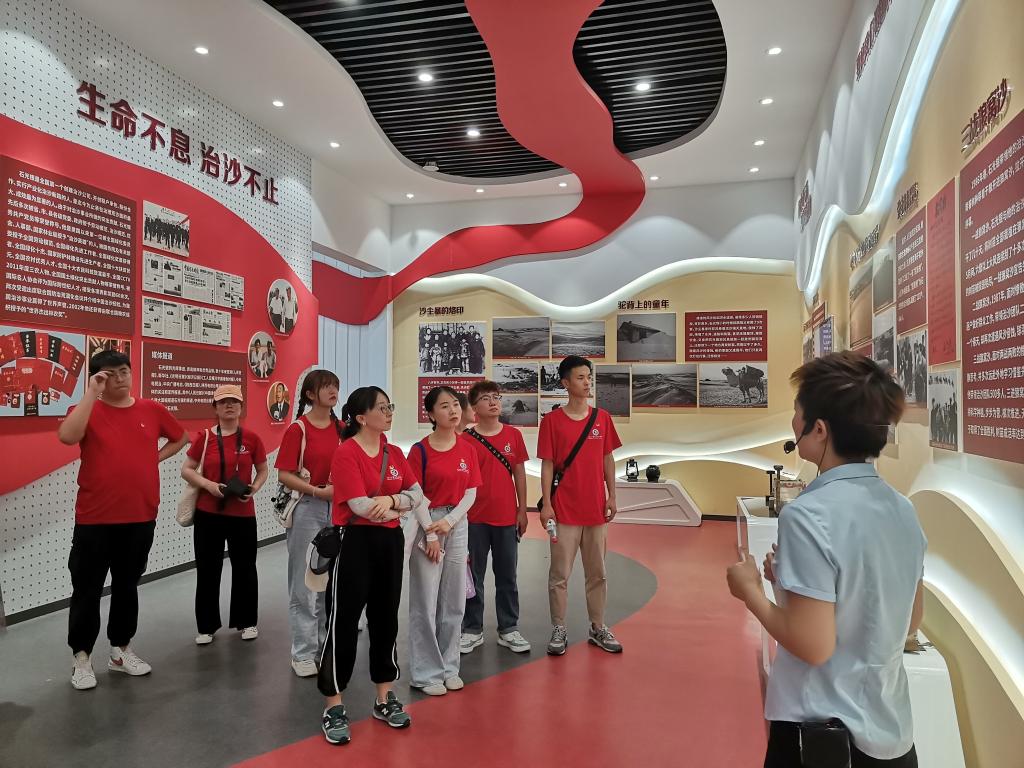 实践团成员在石光银治沙纪念馆聆听讲解员讲述石光银治沙的先进事迹