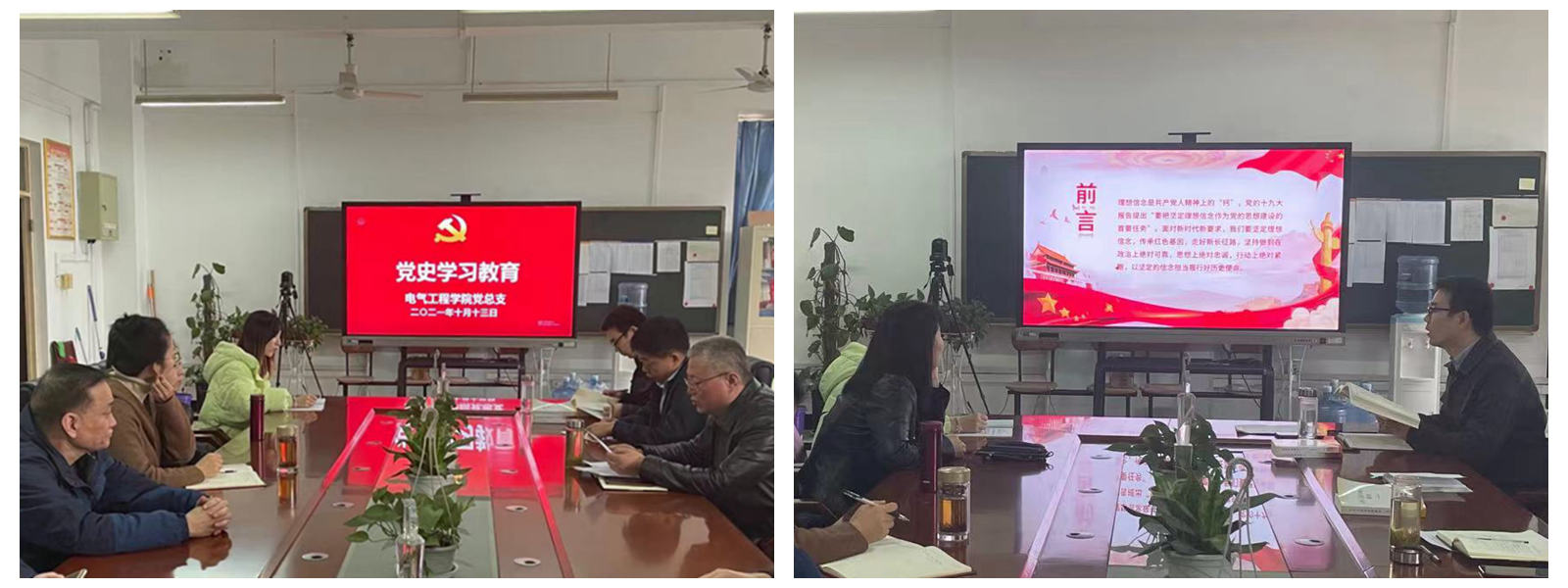 为深入开展党史学习教育,深刻领悟党的百年历程,激励广大党员铭记党的光辉历程,坚定理想信念,10月13日电气党总支在行知楼A502开展党史学习教育暨书记讲党课活动。全体教师党员参加会议,会议由党总支书记韩伟主持。