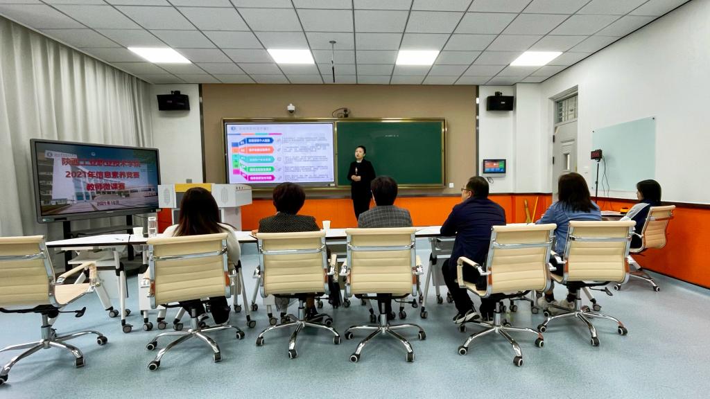 为持续推动我校信息素养教育健康发展,助力学院“双高”建设,备战2021年陕西省及全国高职院校信息素养大赛,根据《关于举办2021年信息素养竞赛的通知》(陕工院办字〔2021〕44号)文件精神,10月22日上午,我校信息素养竞赛教师微课赛现场评审会在智慧教室107顺利召开。由教务处、图书馆、信息化与网络安全处、信息工程学院以及校外行业专家组成评审组进行现场评审,来自信息工程学院、土木工程学院、图书馆等部门的16名教师参赛。