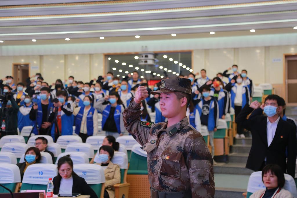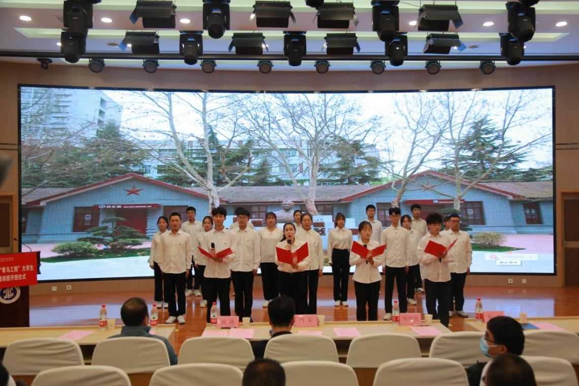 在张芝云同学代表全体青马学员进行发言,陈甲申同学带领全体学员进行庄严宣誓之后,学员代表集体饱含深情地朗诵了《请党放心,强国有我》。最后,学工部部长郝军在讲话中指出青马学员要坚定理想信念,让政治信仰指引青年马克思主义者成长的前进航向;其次要练就过硬本领,让担当作为奏响青年马克思主义者成长的时代强音;最后是要勇当先锋表率,让示范引领成为青年马克思主义者成长的行动自觉。最后开班仪式在奏唱《光荣啊,中国共青团》中落下帷幕。