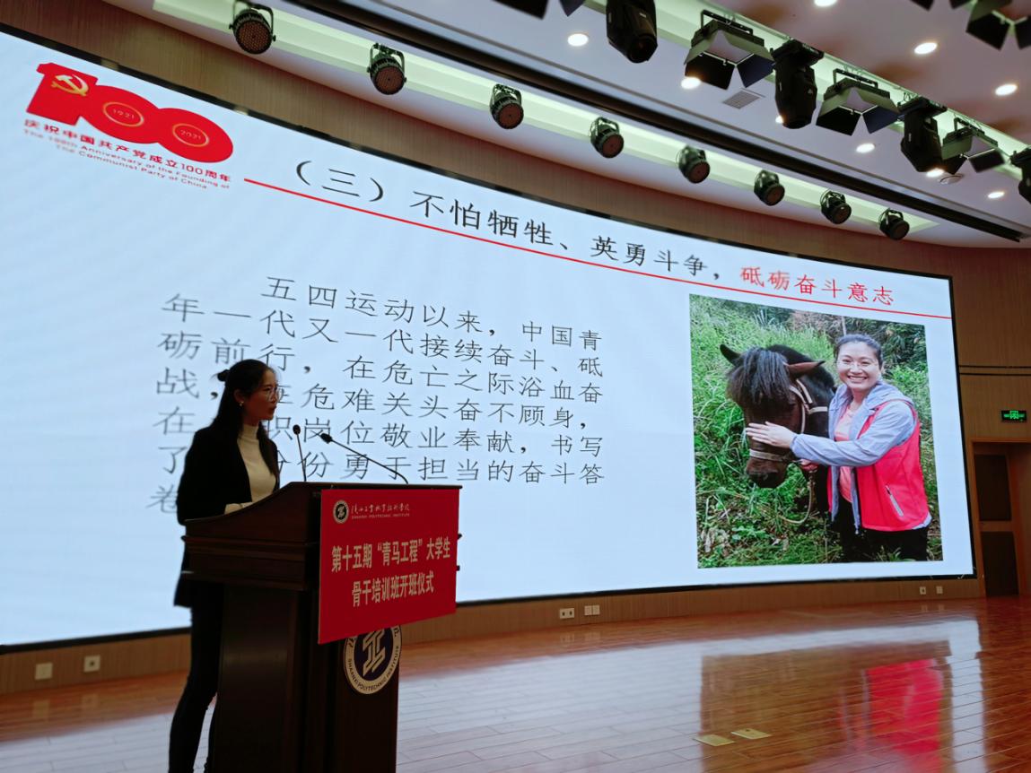 开班仪式之后,中共咸阳市委党校李格为全体青马学员做了题为《弘扬伟大建党精神,争做新时代有为青年》的报告,从伟大建党精神提出的重大意义作为切入口,阐释了伟大建党精神的科学内涵,引导学员弘扬伟大建党精神,争做新时代有为青年。