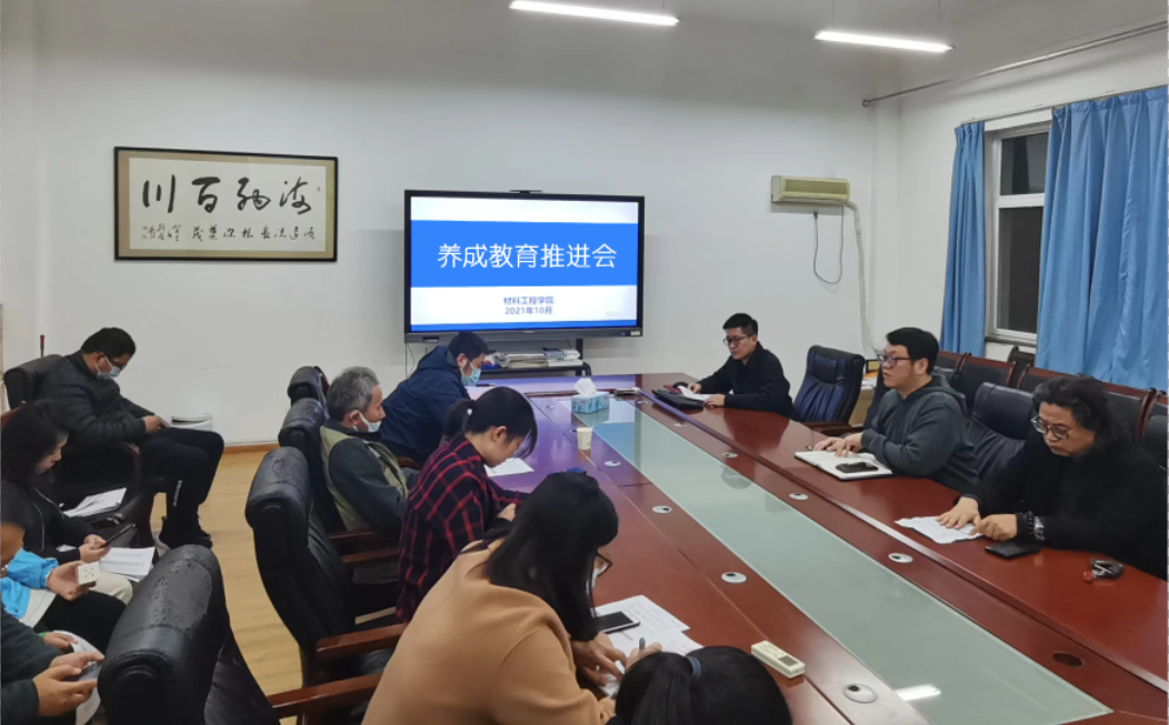 为进一步做好学生养成教育工作,提升育人成效。材料工程学院于10月31日在行知E楼5层会议室召开学生养成教育推进会,党总支书记郝平,学工办主任赵盼盼和全体辅导员、班主任参会。