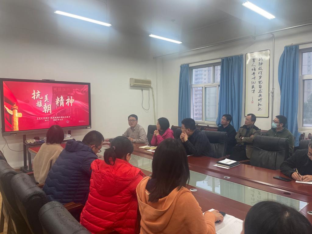 根据陕西工业职业技术学院《关于开展“忆百年党史,向国旗献礼”党史学习教育的通知》精神,10月22日下午,材料工程学院党总支全体党员开展了“我和我的祖国”主题党日活动,活动内容以“抗美援朝精神”为主线分为党总支书记讲党课和集体观影活动两部分。