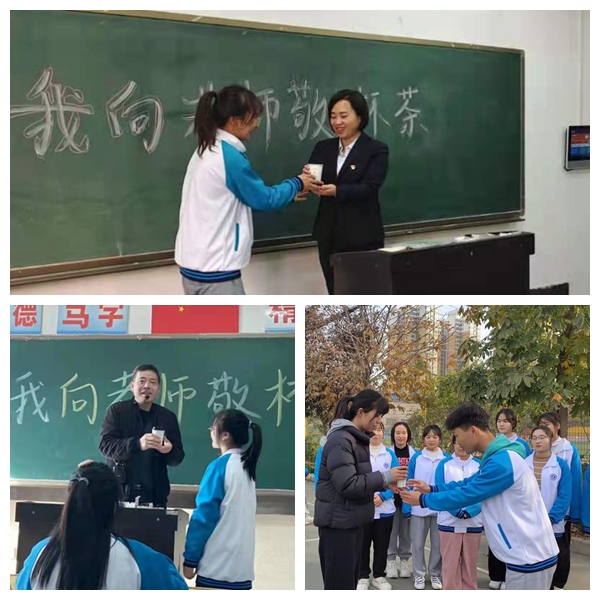 2021年11月15日,恰逢陕西工院建校71周年。当天课前,各班学生党员、入党积极分子、青年志愿者在各自教室、运动场、实训室等学习场地提前准备好开水、茶叶、一次性纸杯等用品,分别向各班授课老师双手敬献热茶,并饱含深情地献上祝福。同学们小小的举动和祝福,让老师倍感温暖。