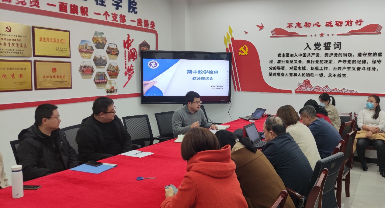 为贯彻落实学校期中教学检查工作安排,机械工程学院于11月10日下午,在行知E楼410会议室召开了教师座谈会。会议由机械学院副院长张文亭主持,全体教师参会。