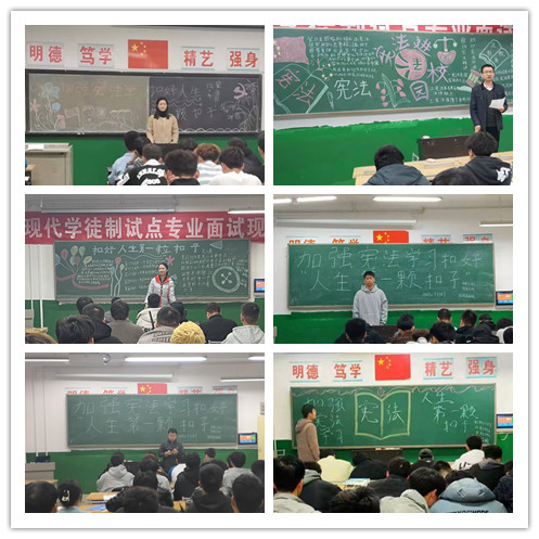 各班同学精心布置板报,提前筹备宪法知识内容,采取宣讲、案例分析、讨论等方式学宪法和讲宪法。班会上,各班班长向班级同学解读了宪法的重要内容和精神实质,明确了宪法学习的重要性。同时在班级群分享了相关学习文件,普及了宪法知识,引导同学们阅读、学习宪法和深入了解我国的根本制度。通过实际案例让同学们进一步了解法律知识,并进行深入讨论让同学们厚植法律意识。