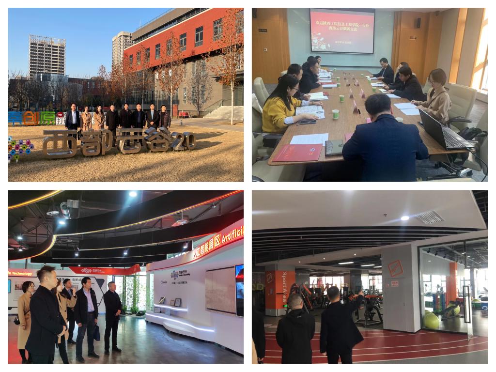 为了进一步推进校企合作,加强专业建设,提升学生就业水平。11月25日,信息工程学院党总支书记闫军、副院长白国政、学工办主任穆昌、人工智能专业带头人桂淮濛博士一行四人赴西咸新区西部云谷创业园调研交流学习。