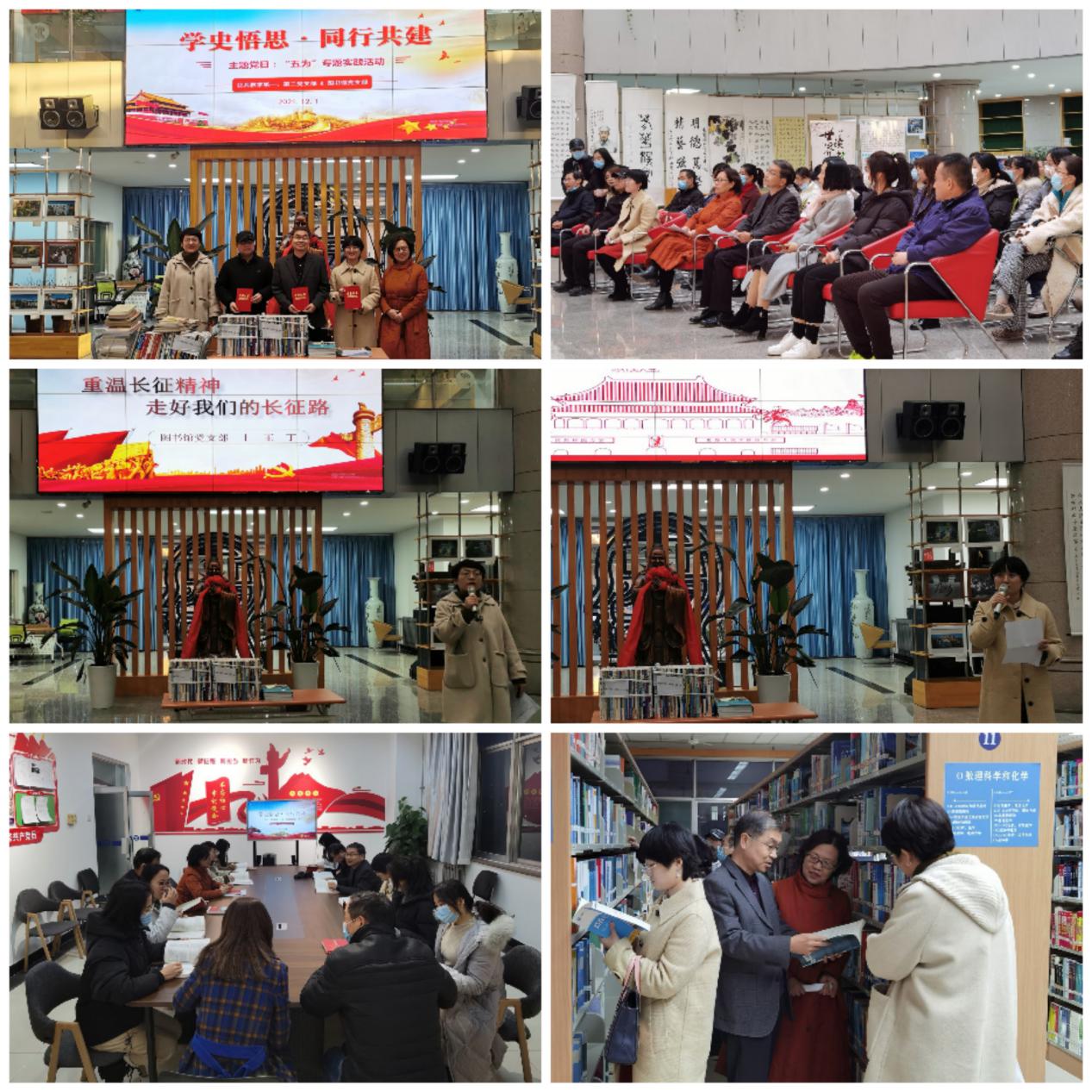 12月1日下午,公共教学党总支第一、第二党支部联合教务党总支图书馆党支部开展了“学史悟思、同行共建”“五为”专题实践活动,活动在图书馆举行,图书馆支部书记、副馆长王丁主持了活动。活动分四个部分:一是开展图书捐赠活动;二是“学党史感党恩跟党走”微党课分享;三是学党史践“五为”专题交流;四是按中图分类法实地整理查找教科研资料。图书馆和公共课教学部党员参加了活动。