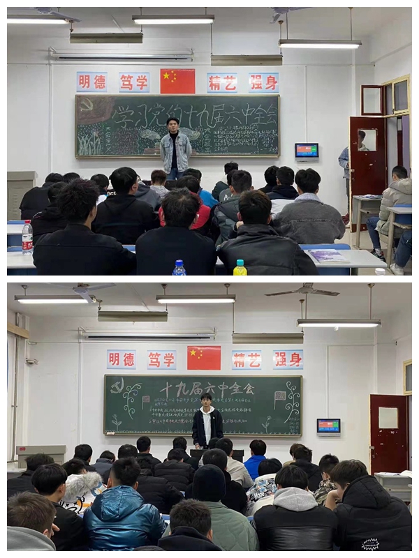 为深入学习贯彻党的十九届六中全会精神,引导广大学生自觉践行初心使命,传承弘扬伟大建党精神,以更加昂扬的姿态奋进新征程、建功新时代。汽车学院于2021年12月1日在各班晚自习开展“学习党的十九届六中全会精神”主题教育活动。