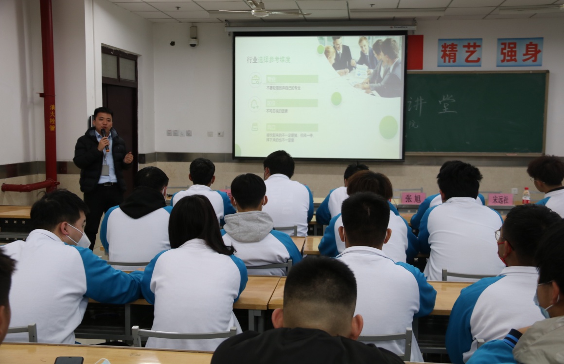 杜洋洋以自己的亲身经历与同学们分享了奋斗与努力的意义,讲座分四个方面展开:一、VUCA时代,如何选择行业;二、天赋加持努力职业规划助力;三、专升本深造?就业?创业?迷茫期的清醒剂;四、面试技巧相关介绍。现场气氛活跃,同学们纷纷表示讲座对他们就业起到了切实帮助,讲座在掌声中结束。