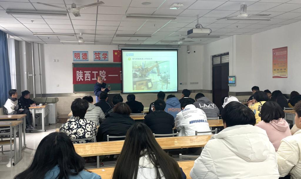 刘全印以西安核设备有限公司目前的主要产品为切入点,从焊接能力要求、焊材种类、焊机科技创新等方面向同学们做了详细讲述,并结合我校焊接专业,向在校生讲解了焊接在工业制造场景的具体应用,特别是讲解了压力容器的焊接技术要领、焊材应用场景以及机器人焊接技术。同时,刘全印还对我院学生的职业发展提出了两点建议,第一,焊接专业大有可为,在校生要做出与本专业相符的职业发展规划,珍惜学校的实训课程,积极考取焊接证,掌握焊接的实际操作能力;第二,在工业机器人广泛应用的大背景下,应掌握机器人的维护和编程知识,具备各种人工辅助能力和日常维护知识。