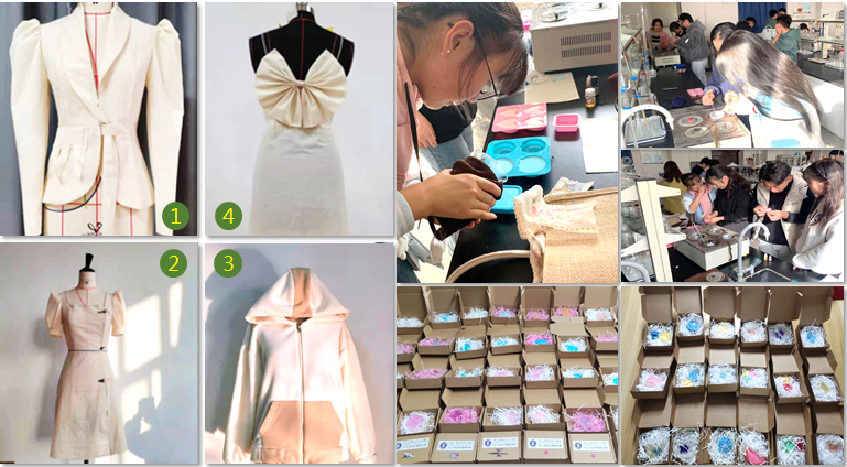 紧密结合专业实践,以劳增智。挖掘专业教学中的劳动教育资源,在实训环节中突出劳动教育的内容要求,使专业教育与劳动教育有机融合。一是将科研项目引入课堂教学,培养创新意识,锤炼学生创新思维,提高专业技能水平;二是将“工匠精神”作为服装设计与工艺等专业技能大赛导向,培养学生严谨、专业、精益求精的品质;三是连续多年安排化工类专业学生自制的手工皂和油污清洗剂活动,从融化到调色、从入膜到脱模,每个步骤都精雕细琢,丰富了学生们想象力以及创造力,增强实践能力。