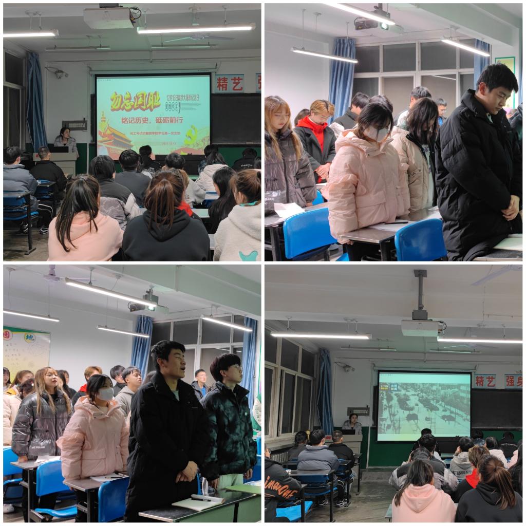 2021年12月13日是第八个南京大屠杀死难者国家公祭日。为沉痛悼念在南京大屠杀中遇难的同胞,引导学生党员铭记历史,勿忘国耻,牢记初心使命。13日晚,化纺服学院学生第一党支部在笃学楼B208教室开展“铭记历史,砥砺前行”国家公祭日主题党日活动,活动由化纺服学院学生第一党支部书记闫琼主持,支部预备党员和积极分子共同参加了此次活动。